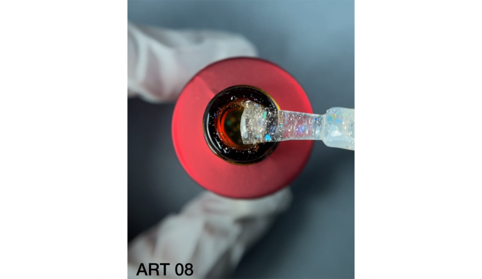 In addition, tops from this series add interesting visual effects to the nail design. Glossy transparent top with shimmer and with the addition of holographic particles. There is no final stickiness in the tops, which reduces the master's time and costs for additional materials. The upper coating has a medium consistency, due to which it is evenly distributed with a brush and does not flow. Does not contain UF filters.